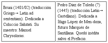 Veamos cómo este texto es interpretado por nuestros autores estudiados. Pedro Díaz de Toledo, como era de esperar, sigue completamente a Bruni y traduce:
