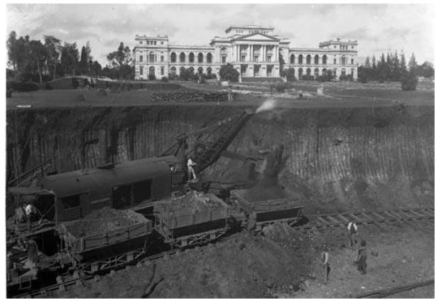 In the Ipiranga Stream Basin, the first recorded interventions date from the period between 1910 and 1920, following the gardening plan works of Parque da Independência that date from 1907, when the open channeling of the downstream stretch was completed, as part of the commemorative works for the Independence Centenary, in areas close to the Paulista Museum, also known as Museu do Ipiranga, located in Parque da Independência (Figure 3). In the 1930s, in addition to these interventions, the stretch between Chácara Inglesa and Bosque da Saúde neighborhoods, in the middle course, also had rectification and road crossings over the stream.