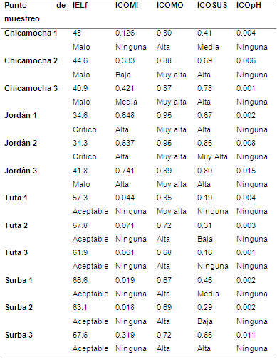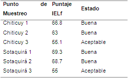 Calidad hídrica de la cuenca utilizando el IELf