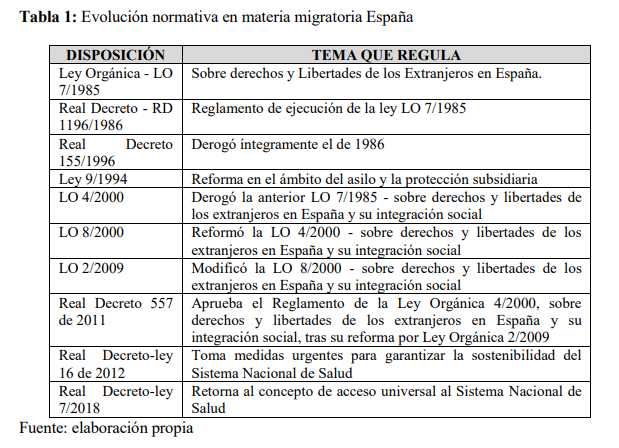 La primera ley de extranjería española, la Ley Orgánica 7/1985, fue derogada por la actualmente vigente del año 2000, una ley aperturista y moderna más orientada hacia los derechos y la integración social de las personas migrantes, tal y como se aprecia en su mismo título. Las sucesivas modificaciones legislativas llevadas a cabo en España se explican por el principio de igualdad de trato entre nacionales y extranjeros en materia de Seguridad Social, recogido tanto en el derecho internacional como en el ordenamiento jurídico interno (Pérez y Redinha, 2017: 84).