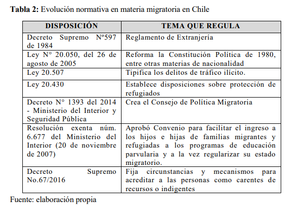 Tabla 2: Evolución normativa en materia migratoria en Chile