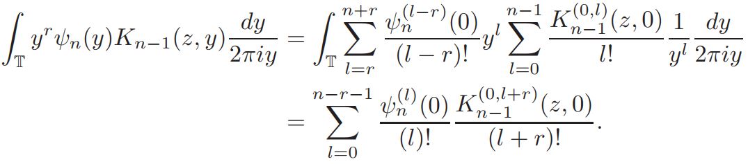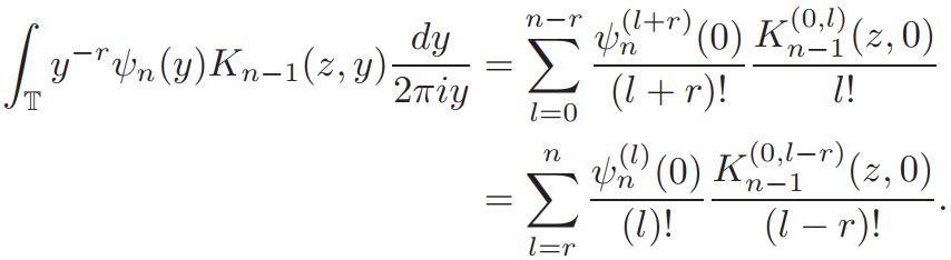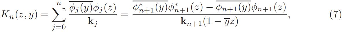 and the right hand side is known in the literature as Christoffel-Darboux formula and it holds if yz ≠ 1. It satisfies the so called reproducing property