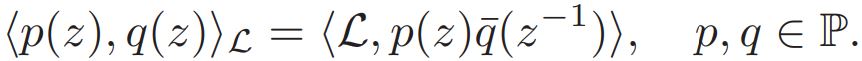 Then, a bilinear functional can be defined in the linear space P = span{zn}n≥0 of polynomials with complex coefficients by