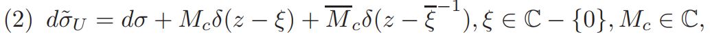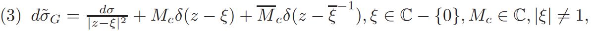There exists a relation between the corresponding families of orthogonal polynomials (see [6]). On the other hand, since the moments {cn}n≥0 are real (see [6]), F(z), the Carathéodory function associated with σ, has real coefficients. Therefore, we have
