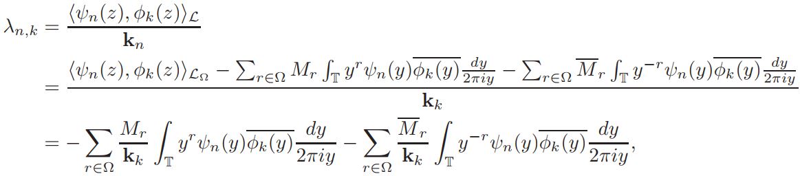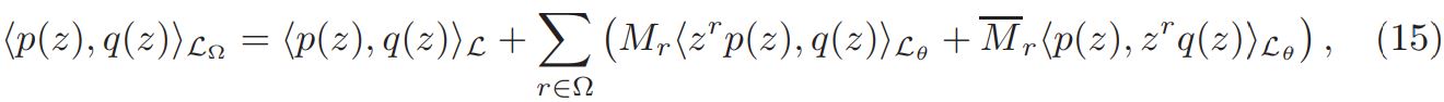 where Mr ∈ C, p, q ∈ P, and (·, ·)Lθ is the bilinear functional associated with the normalized Lebesgue measure in the unit circle.