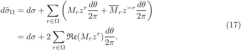 Proposition 3.1. Let σ be a positive nontrivial Borel measure with real moments supported in the unit circle, and let α be its corresponding measure supported in [−1, 1], obtained through the inverse Szegó transformation. Let {cn}n∈Z and {µn}n≥0 be their corresponding sequences of moments. Assume that σΩ, defined by (17) with r ∈ Ω and Mr ∈ R, is positive. Then, the measure αΩ, obtained by applying the inverse Szegó transformation to σΩ, is given by