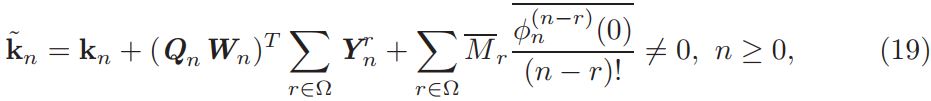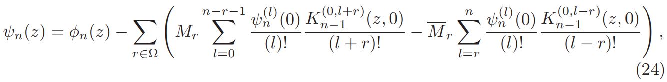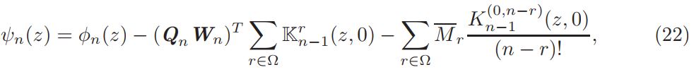 Notice that if rm = min{r : r ∈ Ω}, then from Proposition 2.2 we conclude that if n < rm then Krmn−1 is the zero vector, K(0,n−rm)n−1 (z, 0) = 0 and according to (22) we have ψn(z) = φn(z). This means that the only affected polynomials are those with degree n ⋟ rm.