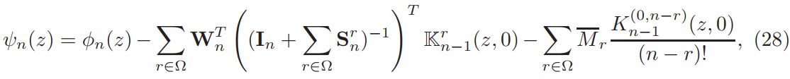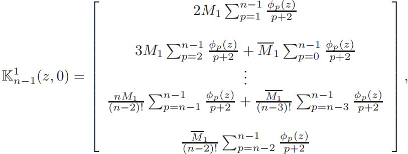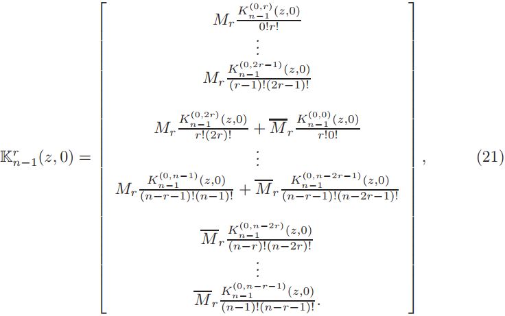 Remark 2.3. Notice that Qn and Srn are n×n matrices, whereas Yrn, Wn and Krn−1(z, 0) are n-th dimensional column vectors.