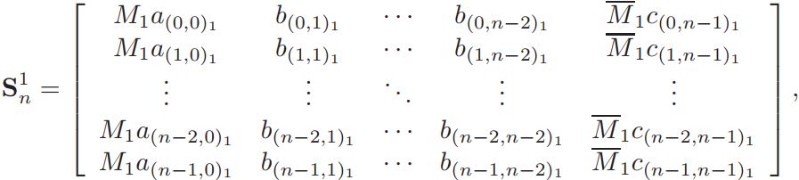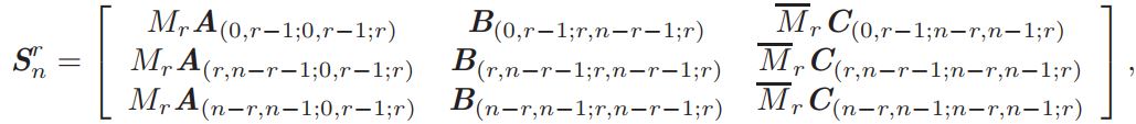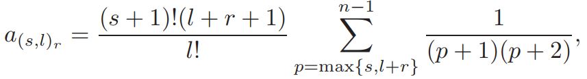 § A(s1,s2;l1,l2;r) will denote a (s2 − s1 + 1) × (l2 − l1 + 1) matrix whose entries are a(s,l)r, where s1 ≤ s ≤ s2 and l1 ≤ l ≤ l2,. For instance,
