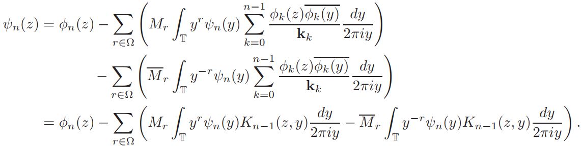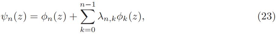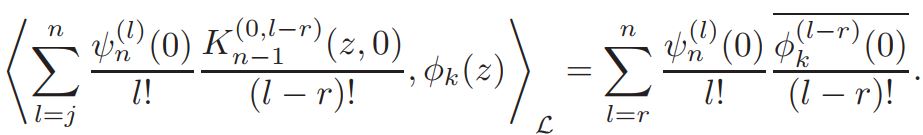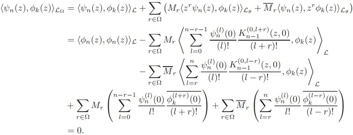 and notice that (ψn(z), φk(z))L ≠ 0 (in general), and (ψn(z), φk(z))LΩ = 0 for n > k.