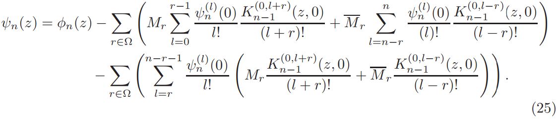 In order to find the constant values ψ(l)n (0), we take s derivatives, 0 ≤ s ≤ n, with respect to the variable z and evaluate at z = 0 to obtain the (n + 1) × (n + 1) linear system