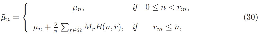 Let σ be a positive measure supported on the unit circle such that its corresponding moments {cn}n∈Z are real. Assume also that the perturbed measure σΩ, defined by (17), is also positive and that Mr with r ∈ Ω is real, so that the moments associated with σΩ are also real. Our goal in this section is to determine the relation between the positive Borel measures α and αΩ, supported in [−1, 1], which are associated with σ and σ˜Ω, respectively, via the inverse Szegó transformation. This relation will be stated in terms of the corresponding measure and their sequences of moments.