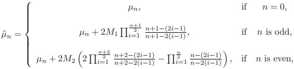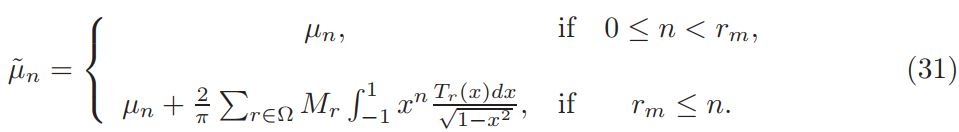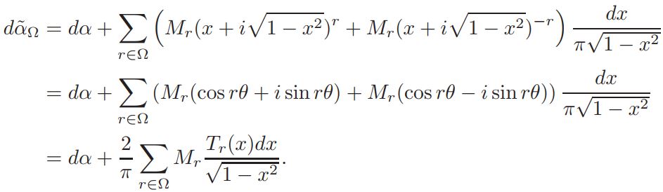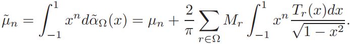 Notice that a measure that changes its sign in the interval [−1, 1] is added to dα. Then, the moments associated with αΩ are given by