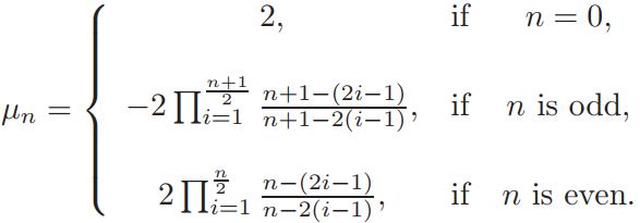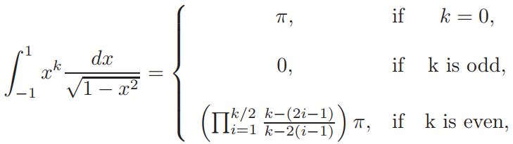 where Tr(x) := cos(rθ) is the r-th degree Chebyshev polynomial of the first kind. Its corresponding sequence of moments is
