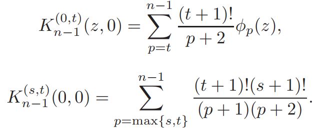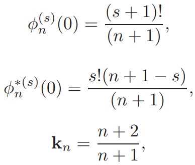 for every polynomial p of degree at most n. Kn(i,j) (z,y) will denote the i-th and j-th partial derivative of Kn(z,y) with respect to z and y, respectively. Notice that we have φ∗n(z) = knKn(z, 0), n ≥ 0.