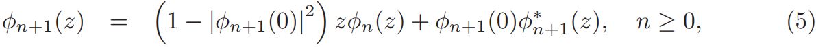 where φ∗n (z) = znφn(z−1) is the so-called reversed polynomial and the complex numbers {φn(0)}n≥1 are known as Verblunsky (Schur, reflection) parameters. It is important to notice that in the positive definite case we get |φn(0)| < 1, n ≥ 1, and