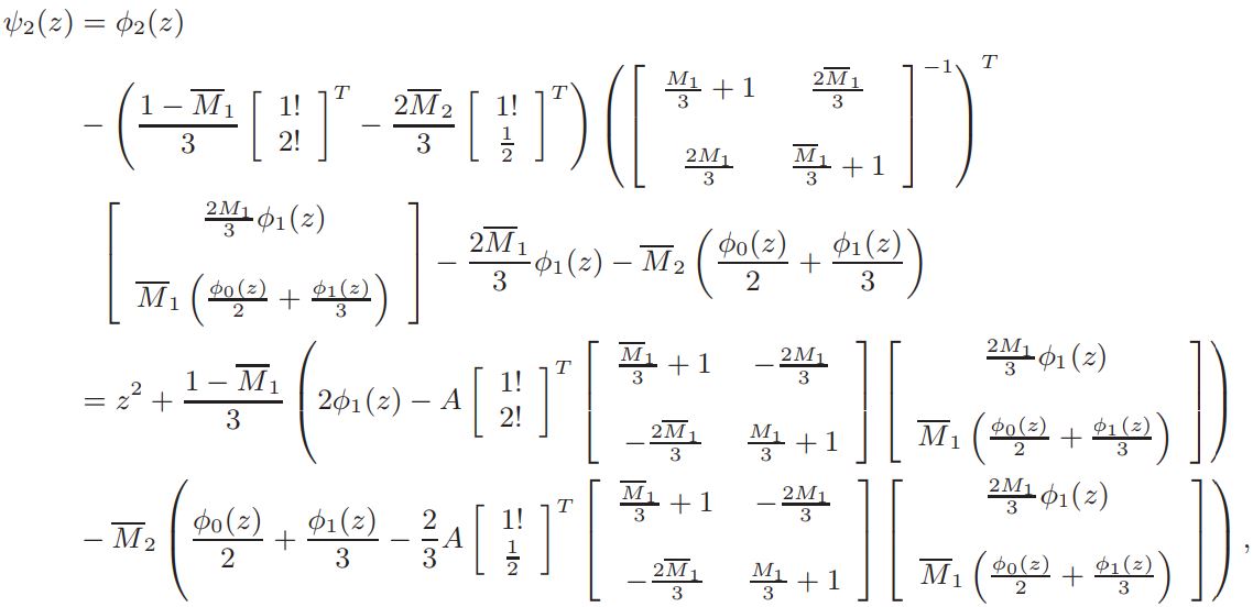 since K21(z, 0) = 0, φ2(z) = z2 + 2/3 φ1(z) and A = 1/det(I2+S1 2+S2 2) = 9/|M1+3|2−4|M1|2 .