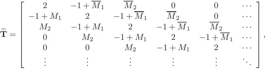 In other words, LΩ represents an additive perturbation of the moments cr and c−r of L, with r ∈ Ω. The rest of the moments remain unchanged. This is, the Toeplitz matrix associated with LΩ is