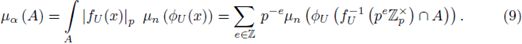 in which fU is an analytic function on U. If A is an open and compact subset of X contained in U, then we define its measure µ α (A) as