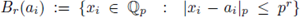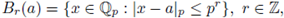 the radii are always integer powers of p; for the sake of brevity we just use the power in the notation Br(a) and Sr(a). On the other hand, since the powers of p and zero form a discrete set in