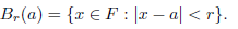 An absolute value | · | on F allow us to define a distance d(x, y) := |x − y|, x, y ∈ F. We now introduce a topology on F by giving a basis of open sets consisting of the open balls Br (a) with center a and radius r > 0: