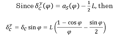 Let us mark an intersection point of inclined mirror and axis x of the coordinating system {x, y} as S. Additionally, let aS be the distance between point S and attachment point X = X0 and δ be the distance between point S and center point C of the tilted mirror. Due to symmetry in respect to line O-S the distance δC is same as between points C0 and S. During mirror movement, the value of δC changes together with the angle φ. Let