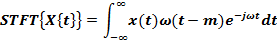 Típicamente se aplica una ventana sobre cada intervalo de señal, previo al cálculo de la transformada de Fourier. El objetivo principal de dicho enventanado es evitar cambios bruscos tales que puedan generar discontinuidades en los intervalos cortos de tiempo definidos para analizar la señal original. De esta forma, se obtienen espectros consecutivos de zonas reducidas de la secuencia de entrada, cada una de ellas de longitud igual a la de la ventana y centradas en el tiempo [11]. De esta manera, si se quiere realizar un análisis de la dinámica de la señal en un intervalo de tiempo particular, entonces se toma una pequeña porción de la señal centrada alrededor de dicho intervalo y se calcula el espectro en la vecindad [12]. Dicha transformada está dada por (1), donde ω(t - m) es la ventana de análisis desplazada un tiempo m
