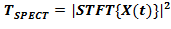 (1) Para la visualización o para etapas posteriores de procesamiento, se usa el espectrograma, que es el cuadrado de la magnitud de la STFT, tal como se expresa en (2).