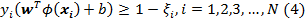 yi (wT ϕ (xi )+b)≥1-ξi ≥ 0
