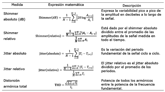 Shimm abs: shimmer absoluto. Shim rel: shimmer relativo. THD: Distorsión armónica total. TP: Localización en el tiempo de los 3 máximos globales de la señal de posición en el ejercicio del tapping.