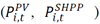 Expressions (10) and (13) present the definition of apparent power depending on the active and reactive power produced by the PV and SHPP generators, respectively. Equations (10) and (13) are different because