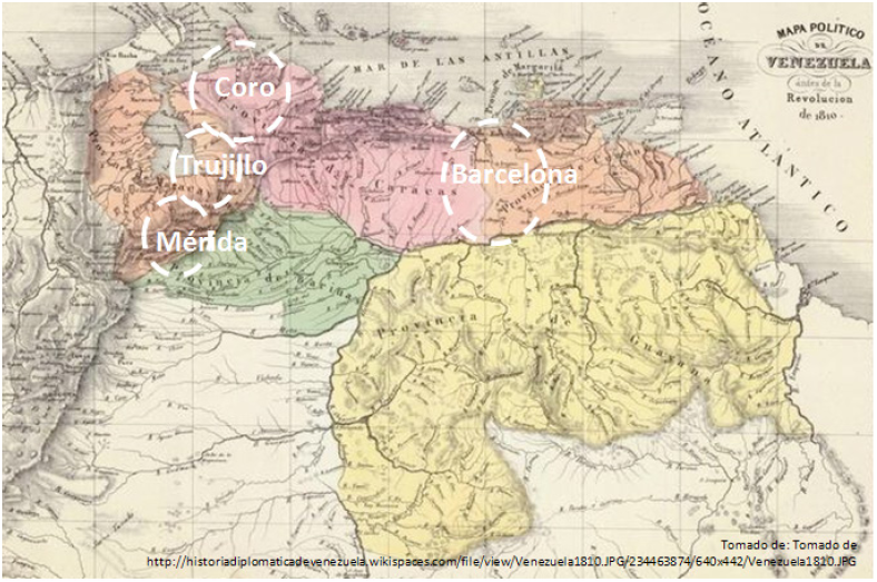 Barcelona, Mérida y Trujillo, antes que por acatamiento o no de la causa de Caracas, respondieron –y casi sin recursos– a viejas aspiraciones de creación de jurisdicciones provinciales propias (Figura 4).