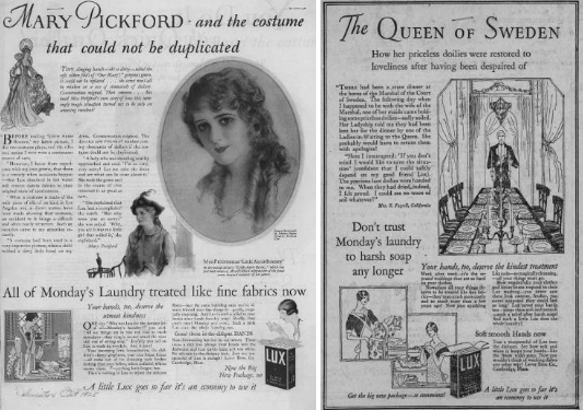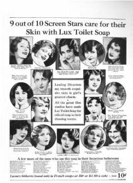 Por meados dos anos vinte, a J. Walker Thompson deu mais um passo na criação publicitária e passou a ligar a marca Lux àquela que durante muitos anos seria a sua imagem de marca, o recurso a celebridades, como estrelas de cinema e membros da realeza.