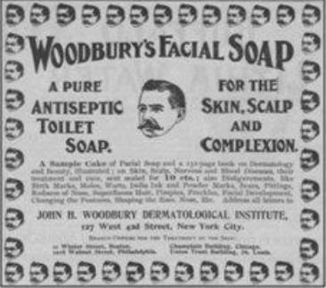A passagem de uma dinâmica utilitária para uma destinada a conferir uma qualidade ao serviço do prestígio é exemplificada pelo “Woodbury’s”. Ele foi criado por volta de 1870 como uma medicina patenteada por John Woodbury, um dermatologista que alegava que o produto curava doenças da pele (SUTON, 2009: 105).