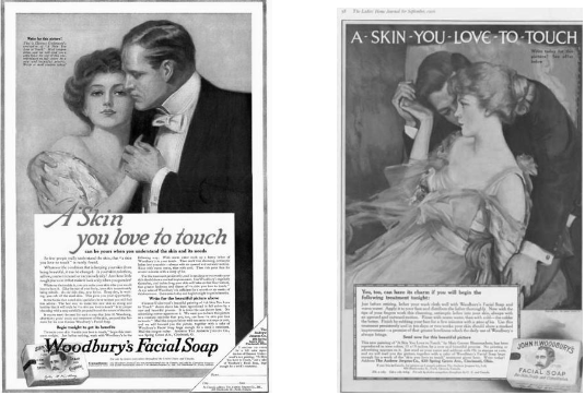 Essa evolução já se nota em Woodbury’s Facial Soap. O sabão estava no início indissoluvelmente ligado ao produto e à sua origem (John Woodbury) que certificava esse produto, fazendo-se igualmente uma proposta de venda assente em propriedades medicinais e higiénicas. Esta orientação manteve-se quando a Jergens Co comprou a marca e durante o período de litigância com John Woodbury. Contudo, o problema foi que as vendas não cessaram de diminuir (SUTON, 2009:106). Em consequência, na década seguinte, o sabão vai ser radicalmente reposicionado quando a já então grande agência de publicidade J. Walter Thompson desenvolveu uma campanha totalmente inovadora para a época. A campanha foi criada pela copywriter Helen J. Landsdowne, e o resultado foi que as vendas de Woodbury’s em 1921 já eram vinte vezes superiores às de 1910 (Ibidem: 107). A enorme força da publicidade como operadora de escolha e orientadora do desejo dos consumidores ficou cada vez mais clara.