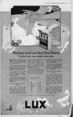 Quando, a partir de 1906, a Lever começou a comercializar Lux nos Estados Unidos, a empresa recorreu aos serviços da J. Walter Thompson. Tal como faria com Woodbury’s, a agência procurou reposicionar Lux, direcionando-o inicialmente para classes sociais com capacidade financeira para adquirir um vestuário mais dispendioso que necessitasse de manter-se em bom estado após a lavagem. O reposicionamento levou também a propor Lux como um produto que podia ser usado para lavar todo o tipo de tecidos delicados (cf. Fig. 4).