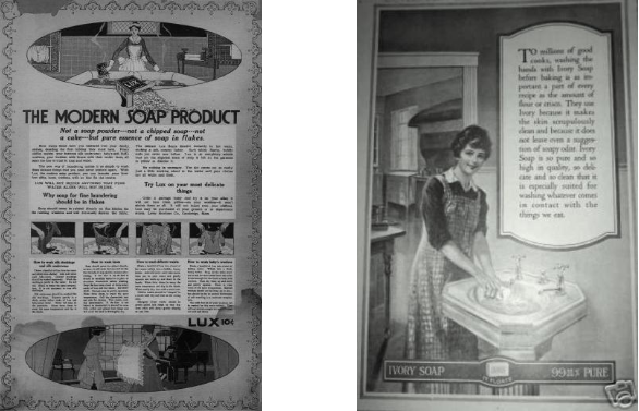 As campanhas publicitárias de sabões e sabonetes permitiram identificar dois grandes géneros de publicidade. Por um lado uma publicidade que prolongou o tipo de anúncios meramente informativos que acompanharam o surgimento das primeiras marcas comerciais durante o século XIX. É a publicidade “lógica”, “reason-why”, que visa transmitir uma proposta de compra assente em reais, ou supostas, propriedades objetivas de um produto e que respondem a uma utilidade buscada pelo consumidor. Pode afirmar-se que se está, neste caso, perante uma estrutura diádica produto → utilidade do consumidor, em que pode ser negligenciada a influência de terceiros indivíduos nas escolhas de um indivíduo.