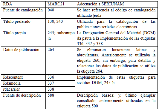 Los cambios principales que surgieron con la aplicación de RDA en la Biblioteca Nacional de México fueron: