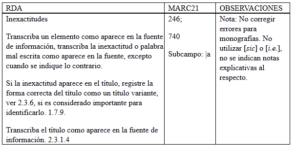 Variante del título: se agrega en tres situaciones: cuando una misma obra aparece con diferentes títulos, cuando el título contiene una inexactitud y cuando obras del mismo autor están encuadernadas en el mismo volumen. Etiquetas 246 y 740 de MARC21. (García López, Mejía Ruiz, Ramos Díaz y Guzmán Rodríguez, E. M., 2012, p. 50-51).