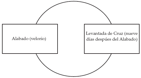Los Alabados y las Levantadas de Cruz21 son obligatorios para el Cuadro anual de Apóstoles durante el Juramento y hasta el final de la Semana Santa. El Juramento es un momento ritual que tiene lugar días antes del cuarto Viernes de Cuaresma (por lo general, jueves), donde se acepta una penitencia y se jura ante el Santísimo.22 En suma, es un pacto que compromete a los Apóstoles a un comportamiento ritual ante la sociedad y ante a Dios. Luego de este periodo de tiempo obligatorio, los miembros de la comunidad se dirigen al Gobernador23 del Cuadro actual, pues éste tiene la obligación, hasta el nombramiento de su sucesor, de convocar a los Señores para el cumplimiento de esas dos responsabilidades.