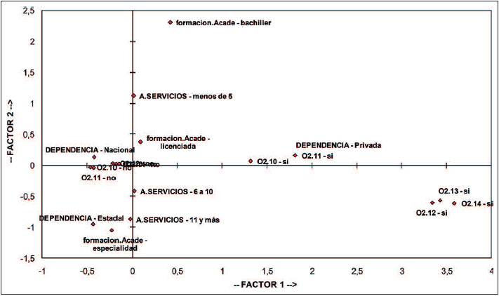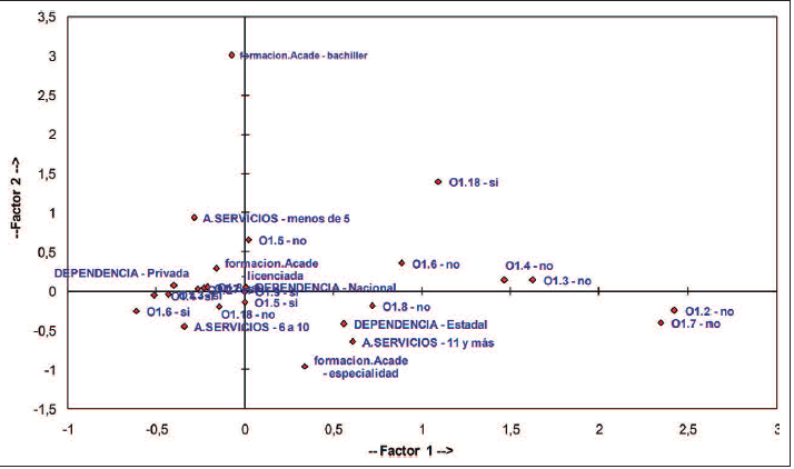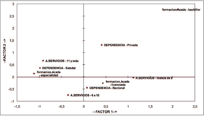 Los resultados han permitido se observar que los docentes que tienen más de 11 años de servicio se encuentran laborando en las escuelas estadales y poseen una formación académica con alguna especialización. Por otro lado, una buena parte de los docentes que laboran en dependencias privadas son bachilleres, ya que en estas instituciones les brindan mayor posibilidad de laborar mientras aún estás realizan su formación académica, por su parte, aquellos docentes con menos de 5 años de experiencia laboral son licenciados en educación, sin ninguna especialización trabajando en instituciones educativas dependientes del Gobierno Nacional. No obstante, las que tienen entre 6 y 10 años de servicio se encuentran distribuidas en las distintas dependencias encuestadas y su grado de instrucción académica es variado.