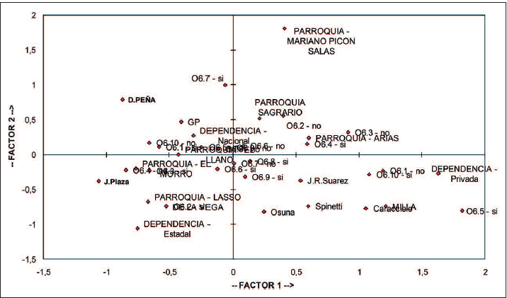 Se aplicó la técnica de la encuesta, utilizando un cuestionario auto administrado, el cual se entregó de manera directa a los encuestados (docentes), quienes sin intermediarios, marcaron sus respuestas para cada enunciado. El instrumento diseñado para la investigación se encuentra estructurado en tres partes, cada una presenta las instrucciones, indicando la forma cómo responder. La primera parte, está referida a la información general o características personales del docente, la segunda, es un cuestionario mixto de tipo dicotómico, referido a los objetivos de la investigación en la que se buscó conocer el nivel de preparación del docente acerca de la gestión de riesgo sísmico. Posteriormente se realizó una lista de cotejo, utilizando preguntas cerradas a in de determinar si se cumple con las normas de seguridad en las instituciones educativas, según Bellandi (1998). Se realizó el análisis de correspondencia (Díaz, 2007), el cual emplea una técnica estadística (análisis de tablas de contingencia) y construye un diagrama cartesiano basado en la asociación entre las variables analizadas por vía de «encuestas».