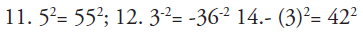 En estos casos los estudiantes demuestran dificultades para manejar el signo negativo (Martínez, 2010). Con base a lo hallado se puede afirmar que las mayores dificultades que presentaron los participantes al tratar de resolver situaciones donde estuvo involucrado la aplicación del concepto de potencia fueron: dificultades para manejar el signo negativo, dificultades para aplicar el elemento inverso para operar con exponente positivo y dificultades con el algoritmo necesario para aplicar el concepto de potencia.