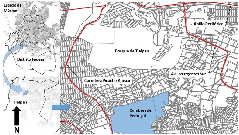 Apanco, G. (2016). La expansión del tejido urbano informal en Tlalpan, el caso de Cumbres de Bellavista. Tesis de licenciatura en Ciencia Política y Administración Urbana, México: UACM.