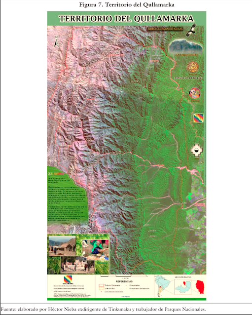 Retomando nuestro recorte analítico, un segundo tramo se enmarca en los procesos de juridización indígena a niveles internacionales, nacionales y provinciales, que remiten a las instancias en las que se consolidan las organizaciones y se inician una serie de encuentros que pueden considerarse la procedencia inmediata de la creación del Qullamarka en 2007. En este sentido, el espacio que actualmente las organizaciones producen y defienden como territorio Qullamarka, ya estaba siendo delineado por las trayectorias de quienes inicialmente conformaron las organizaciones de segundo grado, entre otras cuestiones, ideando proyectos, gestionando subsidios y creando estrategias de lucha diversas para dar continuidad a las demandas y reclamos planteados por los miembros de las comunidades.