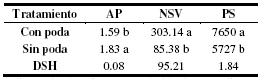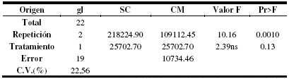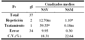 El análisis de varianza para la variable NSV señala diferencias significativas al Pr<0.05 de probabilidad para tratamientos, mientras el NSM no señala significancia (tabla 7).
