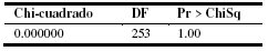 Análisis de homogeneidad de varianzas. El análisis de homogeneidad de varianzas indica que las medias fueron homogéneas (tabla 2), la prueba de Chi cuadrada (ChiSq) no fue estadísticamente significativo al Pr<0.01 de probabilidad, lo que corroboró la continuidad de los análisis de varianza.