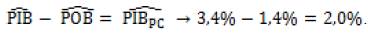 Esto es equivalente a un decrecimiento interanual de 0,3% en el PIB real per cápita, lo que implica que el PIB real creció a una tasa menor que la tasa de crecimiento de la población, 2,2%, lo que implica un decrecimiento del ingreso real de los factores y un aumento de la pobreza.