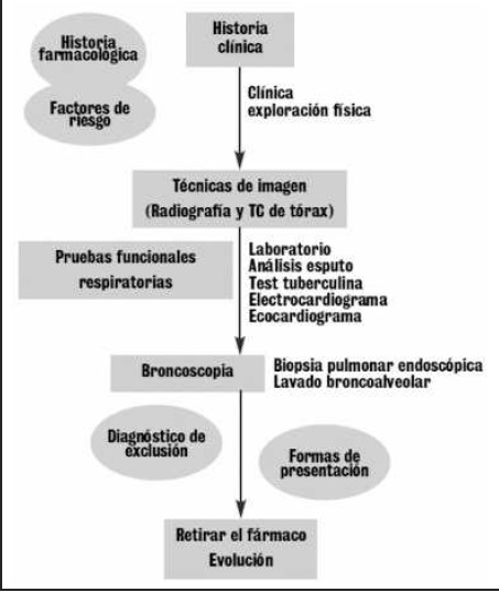 Esquema diagnóstico de la toxicidad pulmonar por fármacos.