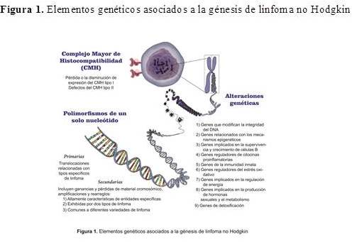 Existen evidencias de la asociación entre el componente genético y la génesis de LNH en los siguientes rubros: complejo mayor de histocompatibilidad, alteraciones genómicas primarias y secundarias y polimorfismos de un solo nucleótido (Figura 1)(7,11,12,13).